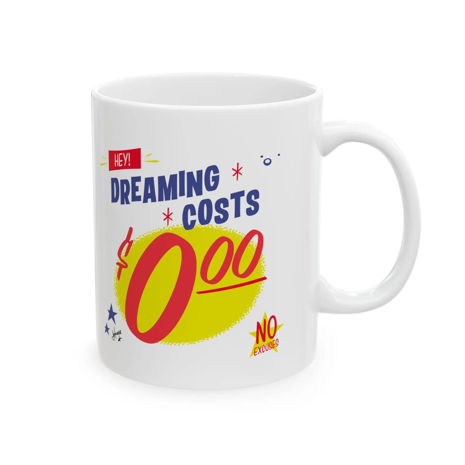 This ceramic mug is perfect for anyone who loves to dream big. The message ‘dreaming costs 0$, it does cost nothing to achieve the dreams’ serves as a daily reminder to stay motivated and work towards your goals. With a glossy finish and vibrant colors, this mug is both practical and inspirational. Suitable for microwave and dishwasher use, this mug is a great addition to your daily routine. It is relevant for those who enjoy a positive mindset and want a daily dose of motivation. Perfect for gifting on birthdays, graduations, or any special occasion.