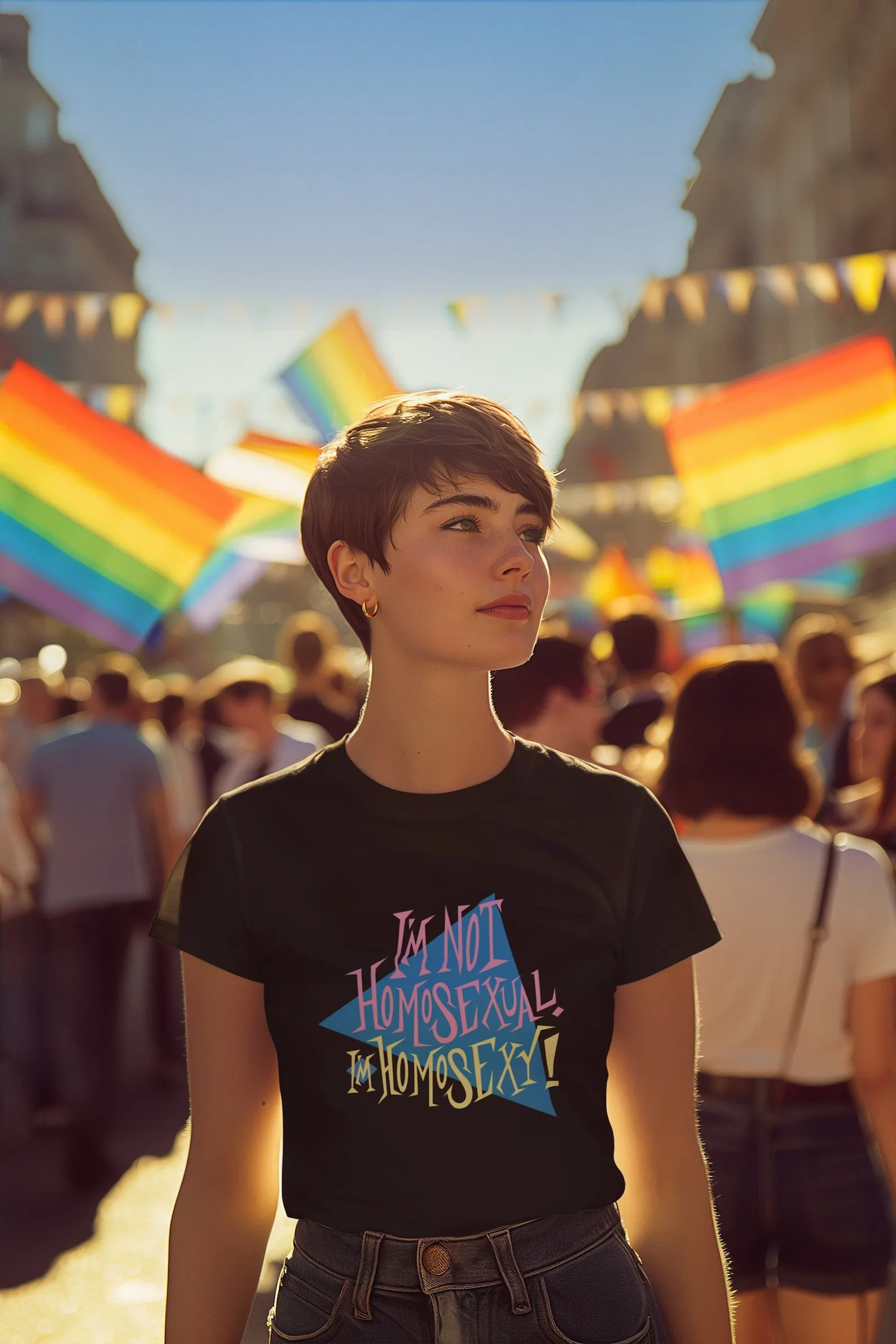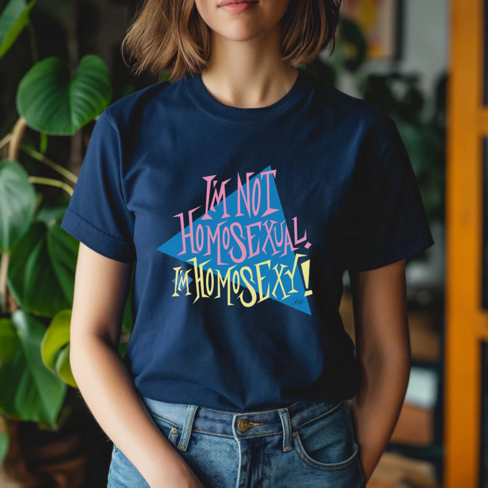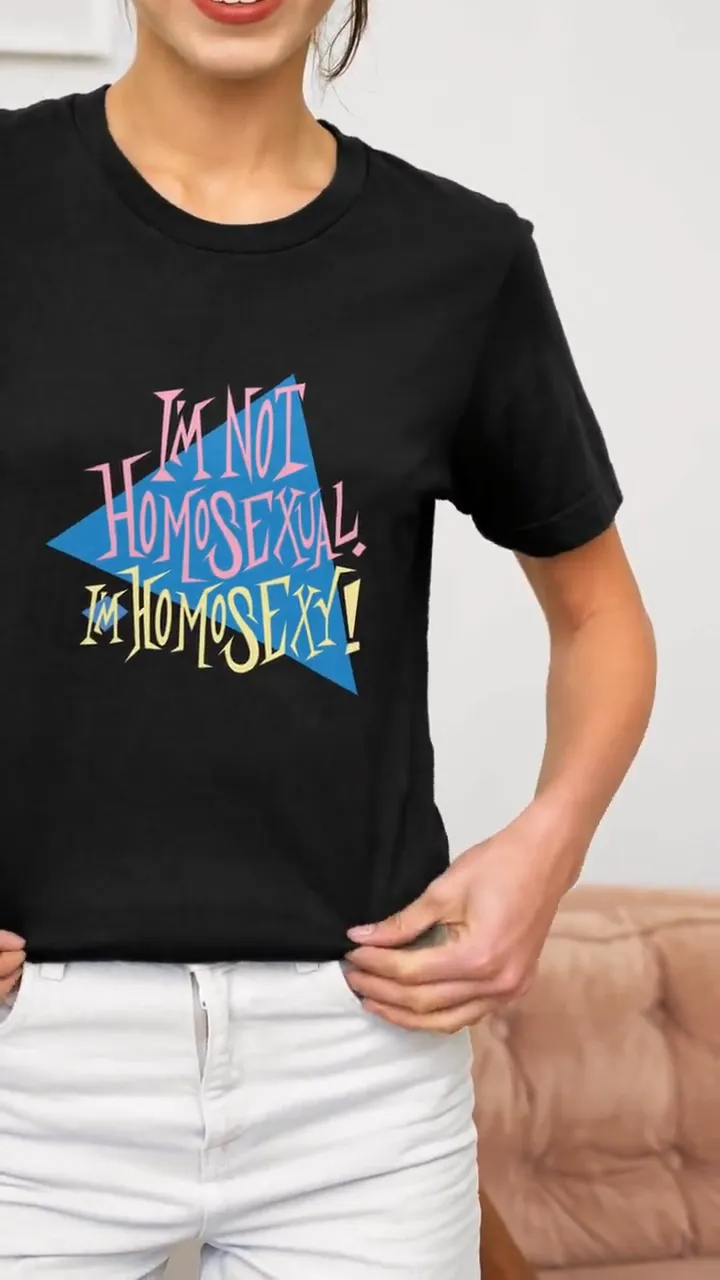 Celebrate your individuality with our exquisitely crafted t-shirt that’s not just “gay,” but proudly “homosexy”! Embrace the boldness of mid-century style infused with a hint of sarcasm and sensuality. Our t-shirt isn’t just clothing, it’s a statement – a declaration of confidence and self-expression. Be proud, be bold, and be homosexy with our unique and stylish t-shirt. Elevate your wardrobe today and let your pride shine through!